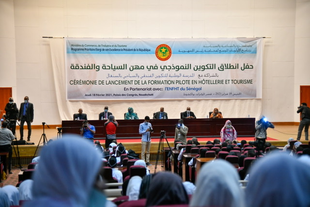 وكانت معالي الوزيرة تتحدث في حفل بهيج بمناسبة انطلاقة دورة تكوينية لصالح 500 شاب في مجال الفندقة والسياحة، وقد حضر الحفل أصحاب المعالي : وزير الشؤون الاقتصادية وترقية القطاعات الانتاجية، وزير التهذيب الوطني والتكوين والإصلاح، وزير التشغيل والشباب والرياضة، إضافة إلى مستشارة الوزير الأول ووالي انواكشوط الغربية وعمدة تفرغ زينة ورئيس اتحادية السياحة .