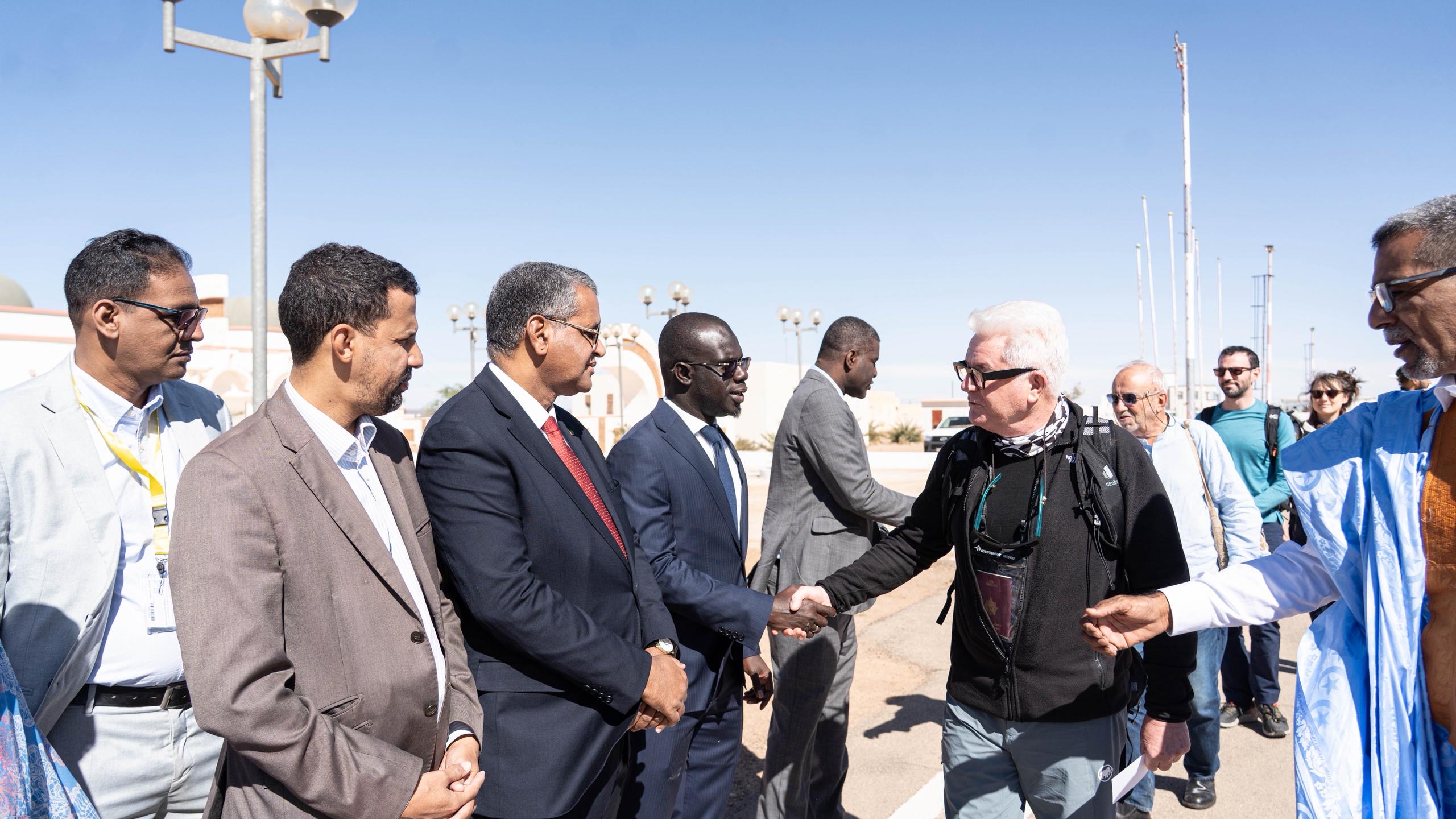 أشرف الأمين العام لوزارة التجارة والسياحة، السيد آمادو الحاج كي رفقة الوالي المساعد لولاية آدرار، السيد سيدي محمد ولد اسويلم، اليوم السبت بمدينة أطار، على استقبال أول رحلة سياحية قادمة من باريس، وعلى متنها 103 سياح، إيذ